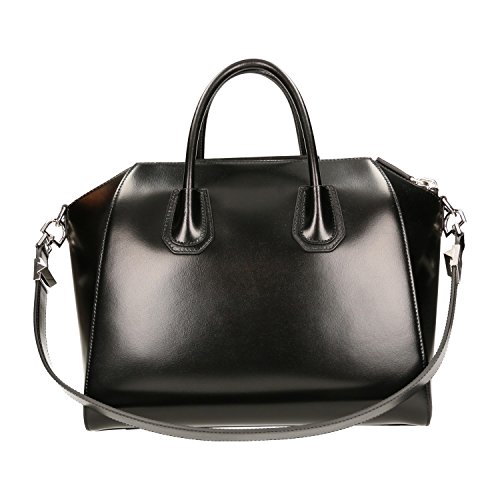 Borsa a mano, donna, chiusura con zip, doppio manico, tracolla, tasca interna, nero