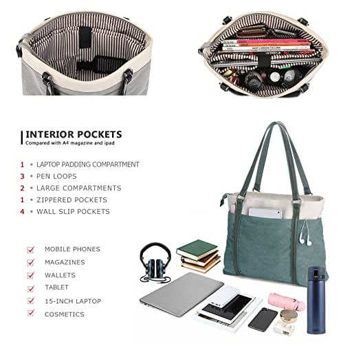 Borsa da donna per computer portatile per lavoro leggero Splice Canvas 15,6 pollici borsa borsa, Verde, Large