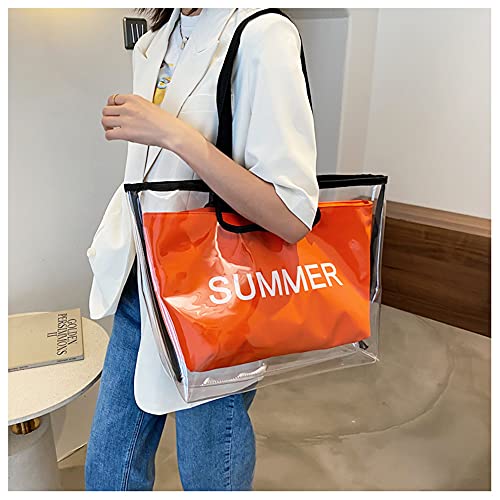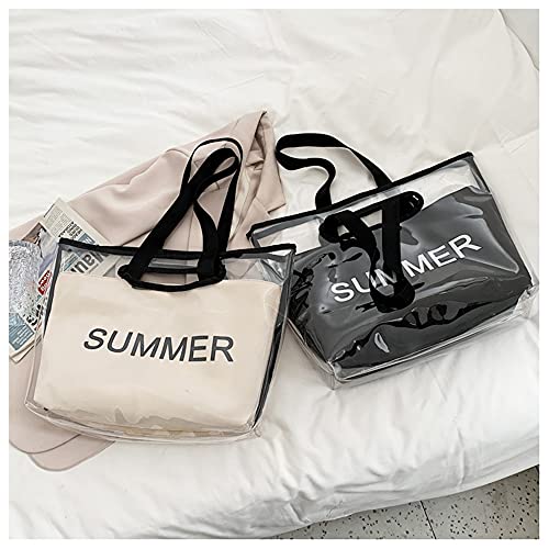 [Materiale trasparente]: lo strato esterno della borsa da spiaggia è realizzato in materiale PVC trasparente, che è forte e resistente all'usura, impermeabile, leggero e non si deforma facilmente.
