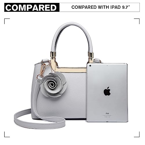 MATERIALE - La borsetta donna con manico superiore realizzata in ecopelle di alta qualità con fiore vintage e hardware dorato chiaro. Questa borsa a tracolla da donna ha quattro colori: Nero, Bianco, Grigio e Rosa