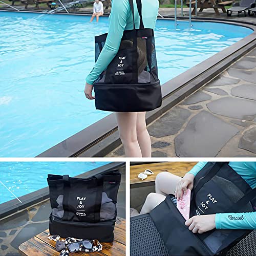 Borsa Mare Donna Grande, Borsone da Viaggio Portatile, Borsa Mare con Borsa Termica, Borsa Spiaggia da Rete Anti-sabbia in Tessuto a Rete Riutilizzabile, per la Spiaggia, Il Nuoto, la Palestra (nero)