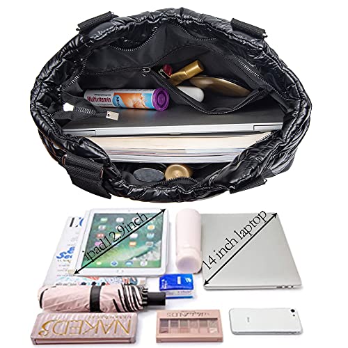 Borsa da donna in nylon trapuntato centrale trapuntata Puffy Puffer imbottito multi tasche borse impermeabile spiaggia infermiera borsa casual viaggio lavoro insegnante shopping utility, Nero