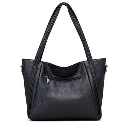 HeHe Borsa Donna in Pelle Lichee a Mano a Tracolla Borsone Monospalla Sacca Grande per Lavoro Weenkend Scuola - Nero