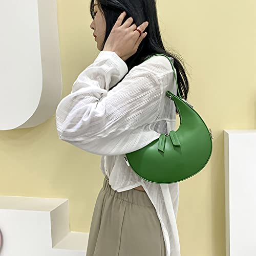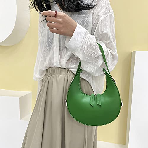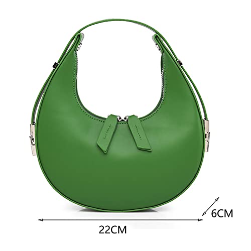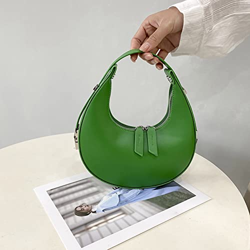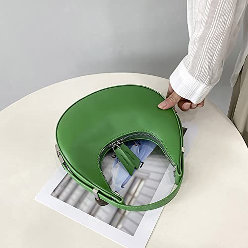 Borsa da donna in pelle PU, borsa a mezza luna in tinta unita, con cerniera a mezzaluna Hobos a tracolla per ragazze, Verde, 220*220*60mm /8.6*8.6*2.36in