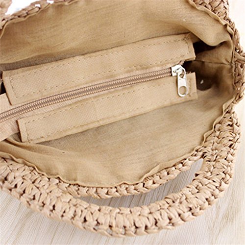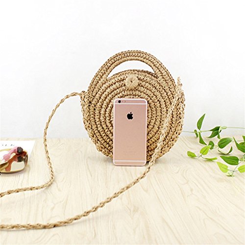 Borsa Donna Piccola Borsa Rotonda da Spiaggia in Paglia Intrecciata con Tracolla e Doppio Manico