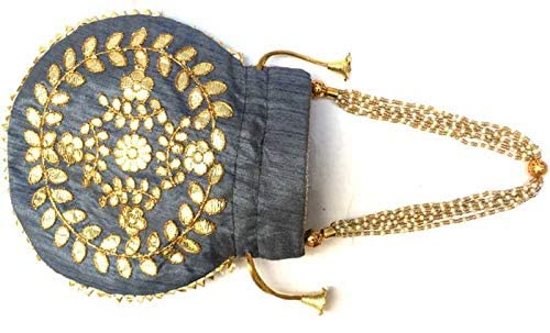 Borsa da donna, Borsa da sposa Potli, Borse da sera, Borsa Potli di seta di design, Borsa Potli grigio, Borsa da donna Potli, Borsa da donna, Grigio