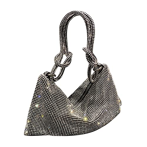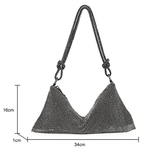 Borsa a mano da donna con strass lucidi, pochette da sera in argento, con strass, piccola borsa a tracolla per matrimonio, festa, discoteca, argento, nero
