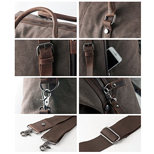 ★ STRUTTURA - Mens borsone in pelle tela progettato con uno scomparto principale che può detiene un computer portatile, iPad, notebook e vestiti, una piccola tasca frontale, una cerniera divisorio interno, una con zip parete tasca interna e due slot aperti