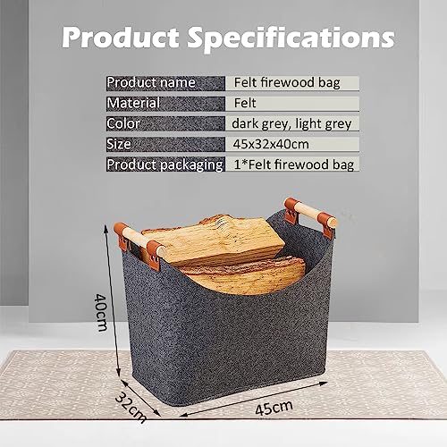 Borsa In Feltro Per Legna Da Ardere, Cestino Feltro Grigio, Cestino In Feltro Con Manico, Borsa Porta Legna Per Interni, Cesta Per Legna Da Interno, Camino Portaoggetti (1*Chiaro+1*Scuro 45*32*40cm)