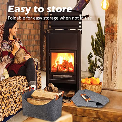 Cesto porta legna da ardere: i sacchetti in feltro sono ideali per trasportare e conservare la legna da ardere. Ti permette di avere sempre legna a sufficienza per il tuo caminetto.