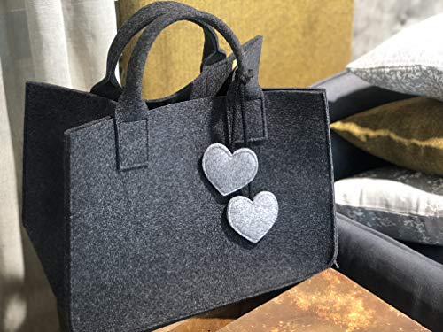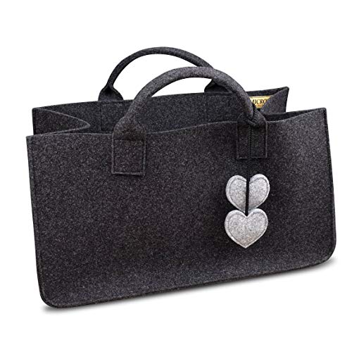 Borsa in feltro in stile tirolese - porta legna - gironali - giocattoli- da decorazione - nero, 52 x 27 x 27 cm
