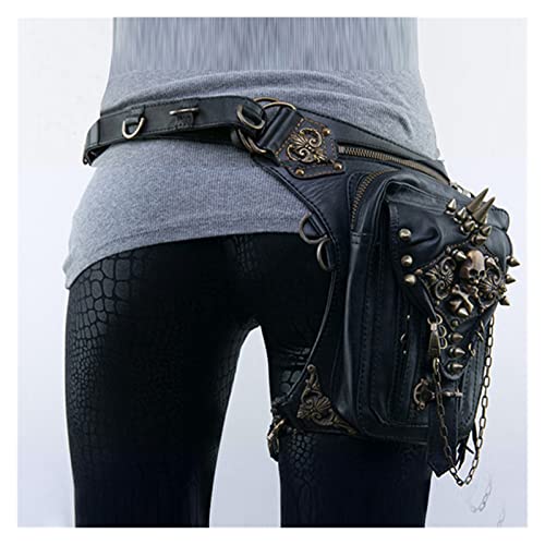 Z-Y Borsa da Gamba Borsa a Gambe di Goccia di Rivetto in Cuoio delle Donne Steampunk retrò Roccia in Vita Borsa da Cintura Uomo Borsa a Tracolla a Tracolla in Moto (Color: Nero, Size: M)