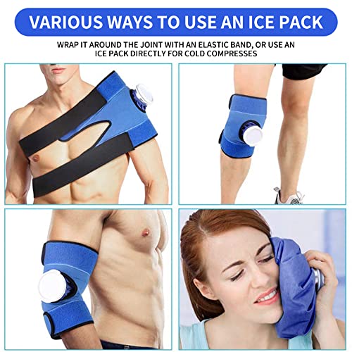 Borsa del Ghiaccio,Riutilizzabile Borsa del Ghiaccio per Ginocchio 2 Pezzi Borsa Caldo e Freddo con Fascia Elastica di Supporto per Testa Schiena Spalle Gamba Ginocchio Lesioni Sportive,2 Taglie
