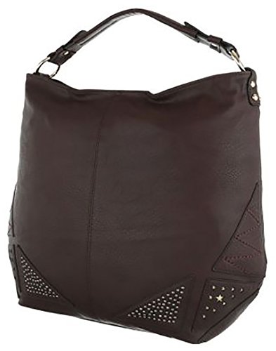 MYWY - Borsa grande donna simil pelle con borchie con manico a mano e tracolla L cm40 H cm35 L cm15-marrone-Taglia unica