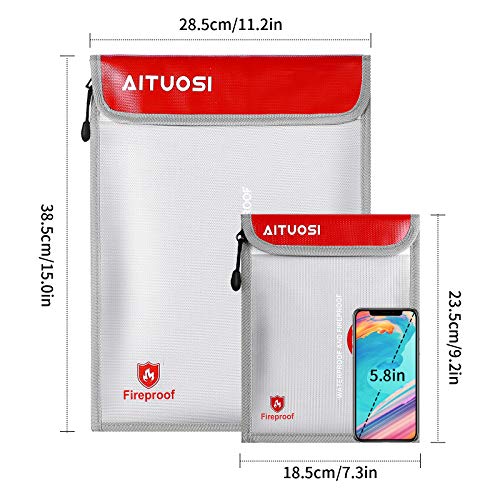 Borsa Ignifuga, 38 x 28cm & 23 x 17cm Impermeabile Resistente al Fuoco Sacchetto del Documento Busta Sacchetto, Borsa Lipo Antideflagrante, per documenti, passaporto e contanti (Grigio)
