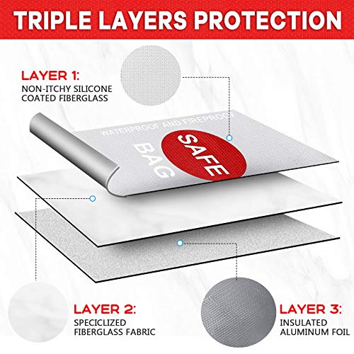 RESISTENTE AL FUOCO E ALL'ACQUA: Realizzato con esterno in fibra di vetro con rivestimento in silicone di altissima qualità e interno in foglio di alluminio, che può resistere a temperature fino a 1000° C (circa 1832° F). Le nostre borse non sono solo ignifughe, ma anche altamente resistenti all'acqua (IP 56), nel caso in cui si bagnasse per qualsiasi motivo, così puoi tenere tutti i tuoi oggetti di valore al 100% al sicuro