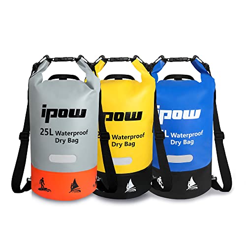 Ipow 25L Borsa Impermeabile Dry Bag Sacca impermeabile con Sacco di separazione bagnato e asciutto Cinghia Regolabile per Barca Canoa,Canottaggio, Kayak, Surf, Spiaggia, Pesca, Rafting, Grigio