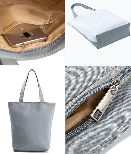 Borsa a tracolla multiuso in cotone: con uno scomparto principale con cerniera per laptop, vestiti, libri, ecc. Uno scomparto interno con cerniera per portafoglio, chiavi, ecc.