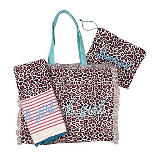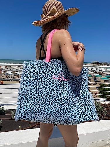 Borsa Mare Jungle Maculato con Zip Stampa Beach Girl 100% Cotone Canvas Misura 50x40x15cm Borsa Spiaggia (Fucsia)