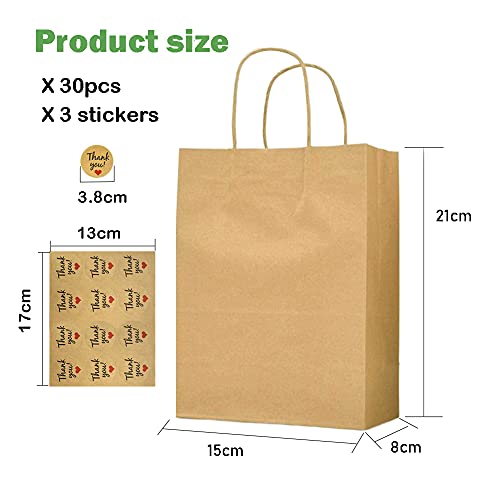 Borsa Kraft Marrone, 30 Pezzi Borse di Carta con Manici Marrone, 21 15 8CM Sacchetto Regalo Marrone per Lo Shopping, Borsa Shopping in Carta Marrone, Adatto per Natale, Wedding (Con 3Pz Adesivi)