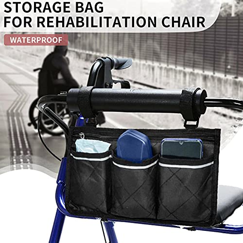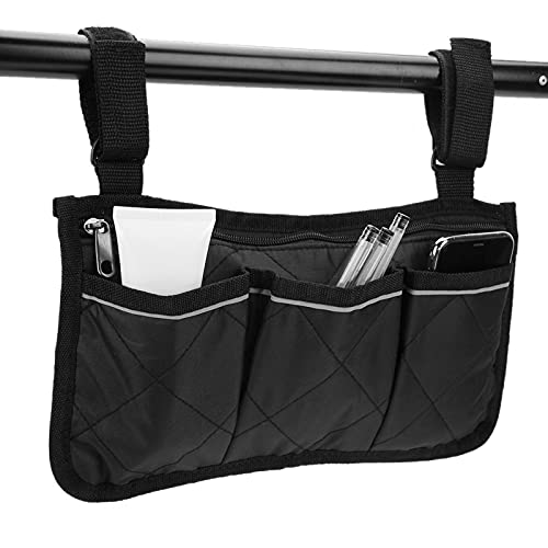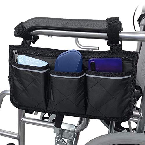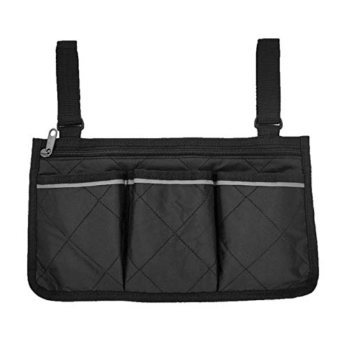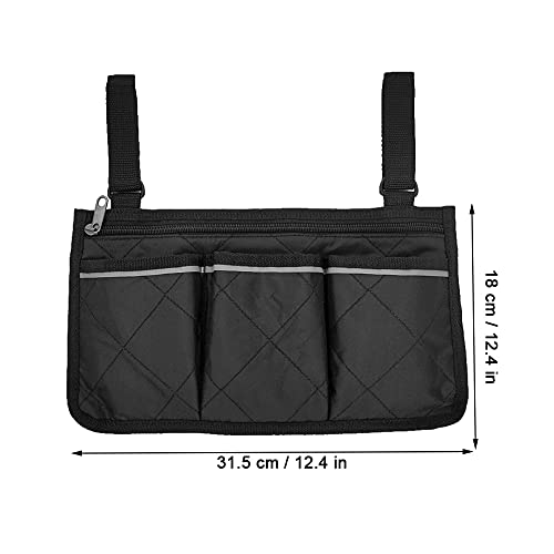 Borsa Laterale portaoggetti per Sedia a rotelle Borsa portaoggetti per braccioli con Tasche Multiple di Grande capacità per Passeggino Scooter Elettrico per Sedia a rotelle(Nero)