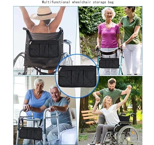 【Conservazione delle necessità quotidiane】 Utilizzare questa borsa laterale di base per il bracciolo della sedia a rotelle per riporre telefoni cellulari, portafogli, snack, medicine, custodie per occhiali, ombrelli, telecomandi e altre necessità in luoghi facili da raggiungere, così come le cartelle cliniche di andare in ospedale.
