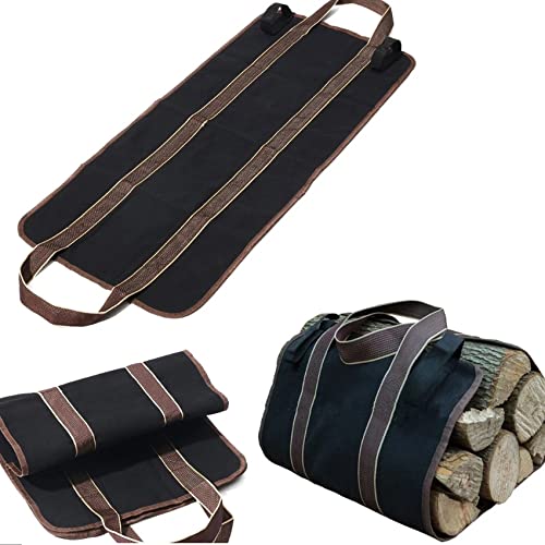 Borsa per legna da ardere in tela, per camino, per legna da ardere, impermeabile, portatile, pieghevole, per esterni, colore nero