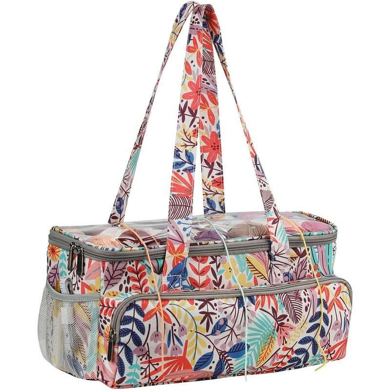 Elegante borsa da viaggio in maglia - : Questa borsa in maglia ha un design robusto ed è realizzata con tessuti Oxford 600D di alta qualità. Questa bellissima borsa all'uncinetto è perfetta per riporre filati, aghi e altri accessori lavorati a maglia. La comoda tasca frontale viene utilizzata per il metro/segnalatore/gancio/ago intrecciato. La cerniera principale scorre facilmente e si apre, rivelando un centro spazioso che ti permette di riempire i tuoi oggetti essenziali. [Copertura in PVC trasparente con 3 fori in lana lavorata a maglia]: la copertura sulla parte superiore della borsa è trasparente, quindi puoi vedere cosa c'è dentro senza aprirlo. Viene fornito con tre fori in metallo che consentono di tirare il filo utilizzando mantenendo la borsa chiusa. Le cerniere proteggono il tuo gomitolo di lana dalla polvere e da tutto ciò che fluttua nell'aria e impediscono anche al tuo gatto o cane di strapparsi. [Il peso estremamente leggero è meglio per te]: il sacco in tessuto pesa