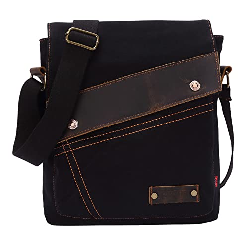 Borsa di Tela, Maschi e Donne Studenti Casual Borsa a Tracolla Multifunzionale Borsa Vintage Borsa Messenger Borsa da Viaggio (black)