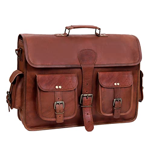 Borsa messenger in pelle fatta a mano per computer portatile, borsa a tracolla imbottita borsa per la scuola 16X12X5 pollici marrone ...