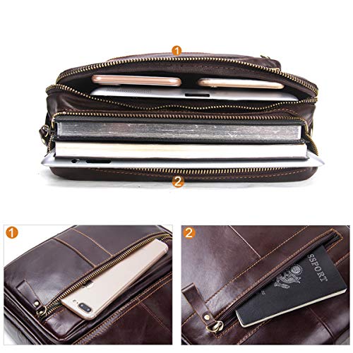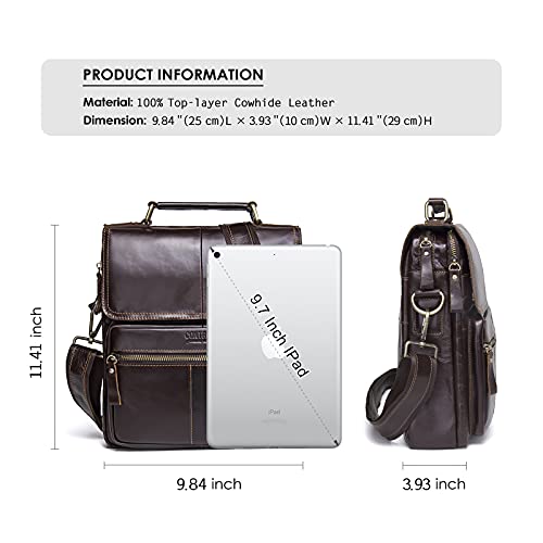 Borsa messenger in pelle da uomo, borsa messenger monospalla vintage marrone, adatta per lavoro da viaggio con borsa per iPad da 9,7 pollici