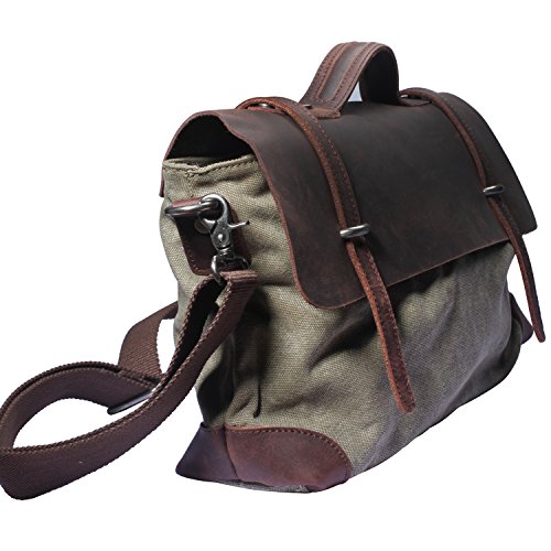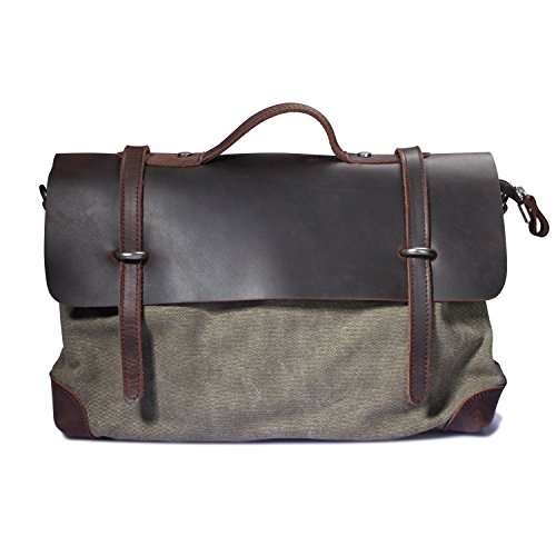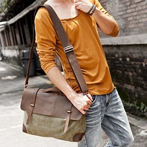 DRF Borsa Messenger da Uomo in Tela e Pelle borsa a Spalla per Scuola Viaggo.SKU:BG-21 (Verde Nero)