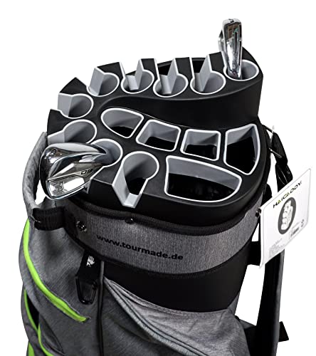 Borsa da golf modello 2021 con sistema di organizzazione a 14 scomparti: 9 scomparti per ferro/zeppe anche in +1", 4 scomparti per ibridi, legni o driver, scomparto per putter oversize