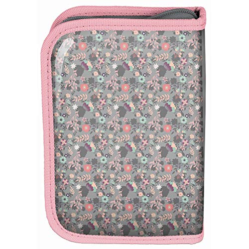 Astuccio per bambini, 22 pezzi, motivo: cavallo e occhiello, colore: grigio/rosa
