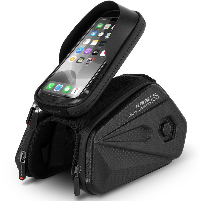 La borsa da manubrio per bici funziona come supporto per telefono offrendo allo stesso tempo una protezione completa e consentendo un facile accesso alla funzionalita touchscreen del telefono. Il design della visiera parasole rende lo schermo piu pulito, ottimo per le giornate di sole. Il guscio rigido impermeabile e durevole, resistente alle vibrazioni e indeformabile, proteggendo i tuoi oggetti nei giorni di pioggia e in ambienti estremi. Perfetto per cellulari inferiori a 6,5 pollici. Caratteristiche: La finestra della pellicola TPU ad alta sensibilita ti aiuta a utilizzare facilmente il cellulare durante la guida. Custodia per telefono staccabile per un comodo inserimento / estrazione del cellulare. Il design della visiera parasole rende lo schermo piu pulito. La porta di apertura per i cavi sul fondo ti consente di ascoltare musica, rispondere e caricare il telefono durante la guida. Borse laterali doppie grandi con apertura con cerniera per un facile accesso agli oggetti.