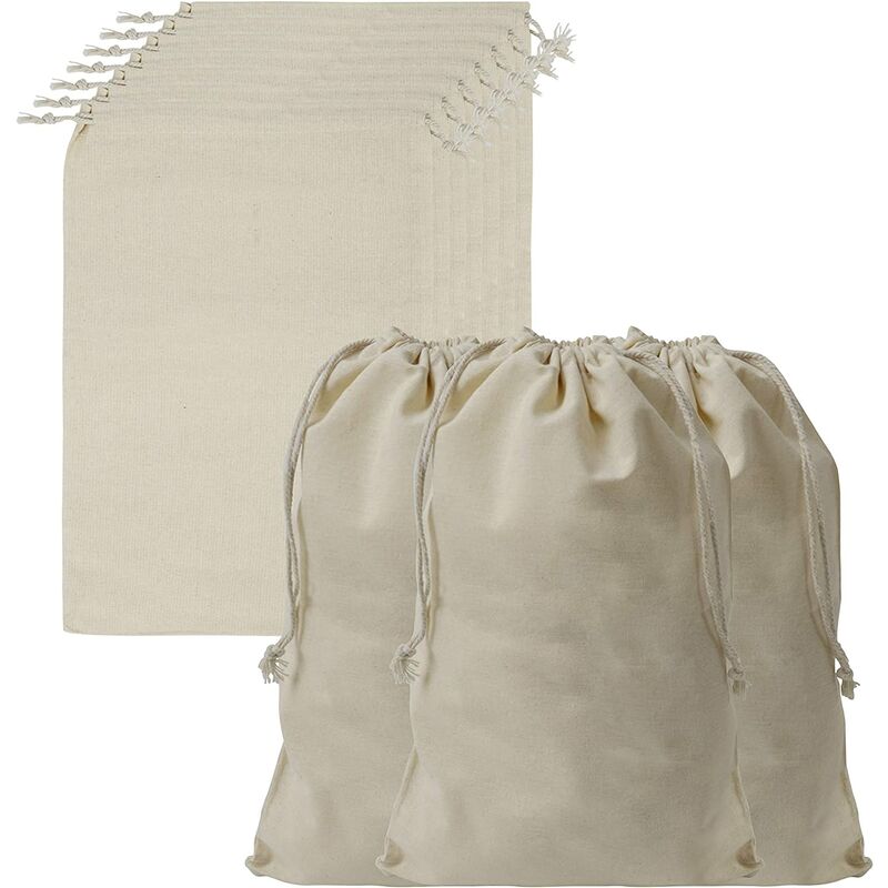 10 BORSE IN COTONE: Questo set include 10 borse in cotone della stessa dimensione. Ogni sacchetto di cotone è largo 20 cm e alto 30 cm. Sono realizzati in cotone 100% ecologico, ideali per conservare gli alimenti. Sono inoltre biodegradabili, ecologici e non tossici. Le robuste borse di mussola sono dotate di un cordoncino cucito nella parte superiore, che può essere tirato per chiudere la borsa e fungere da maniglia. Le borse possono contenere fino a circa 2,5 kg. MANIGLIE SCORREVOLI: questa borsa ecologica riutilizzabile ha una maniglia scorrevole su entrambi i lati. La corda è avvolta in un anello per creare due manici per il trasporto della borsa della spesa riutilizzabile. Tirando le corde, la lunghezza delle corde si allunga mentre la parte superiore della borsa si stringe e si chiude. Le stringhe possono essere legate per contenere i tuoi oggetti ed evitare che cadano. Le borse possono anche essere appese alle porte tramite le maniglie. BORSA IN TELA DI FRUTTA VERDURA