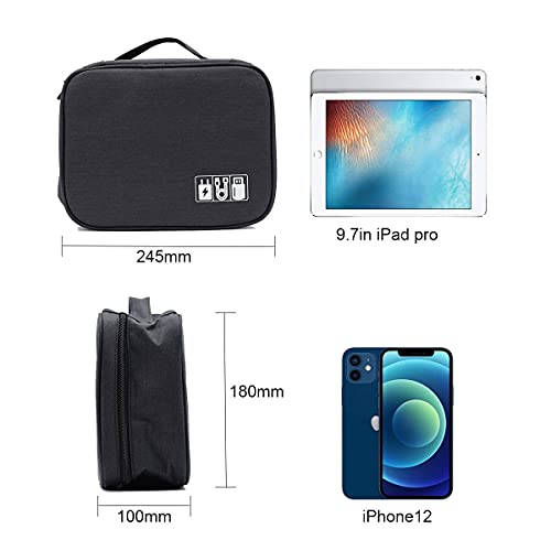 Borsa Organizer per Accessori Elettronici, Organizzatore Cavi da Viaggio, Accessori Custodia per Cavi, Universale Custodia da Trasporto Nero per USB Caricabatterie Cavo di Ricarica Cellulare