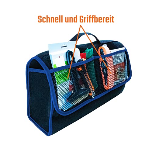 Borsa organizer per bagagliaio, per auto, bagagliaio auto, borsa con chiusura in velcro (nero blu)
