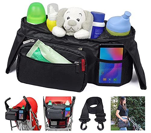 Borsa Organizer per Passeggino Universale + Cinghia a Tracolla con Porta Biberon Termici Pochette da Polso Tasche Porta Oggetti Impermeabile di Grande Capacità
