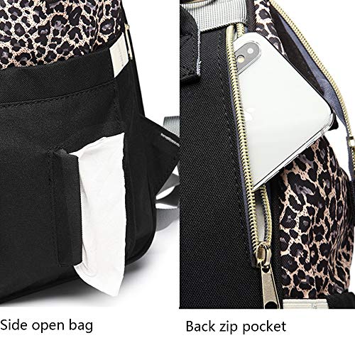 Borsa per pannolini con motivo leopardato patchwork per allattamento, borsa da viaggio per la mamma per la cura del bambino all'aperto passeggino organizzatore zaino (marrone)
