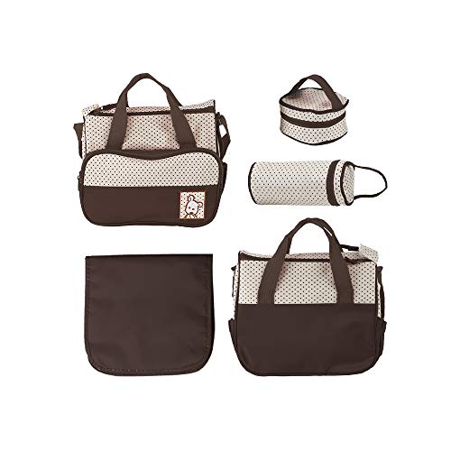 Borsa per pannolini a 5 pezzi, borsa multifunzionale per pannolini e mummia (Marrone)