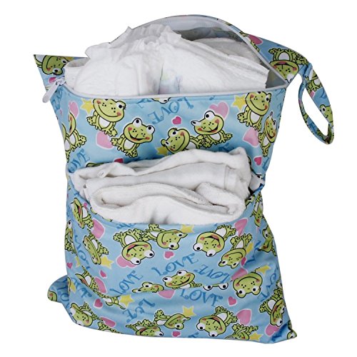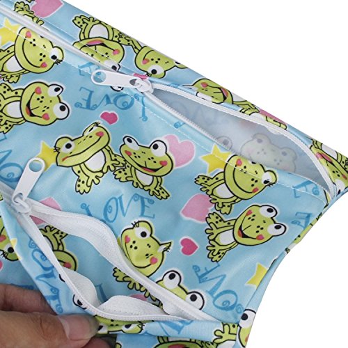 Borsa per pannolini di stoffa - SODIAL(R) Borsa per pannolini di stoffa per bambino con cerniera impermeabile riutilizzabile di modello di rana.