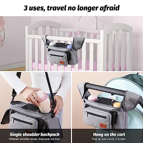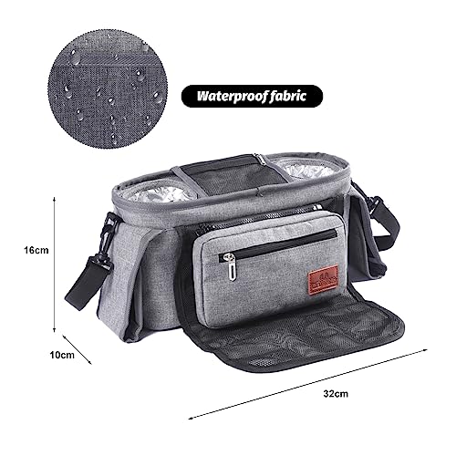 Borsa Passeggino - universale organizer per passeggino, accessori per passeggino, organizer con porta bevande isolato e tracolla, per pannolini e telefoni cellulari, Grigio