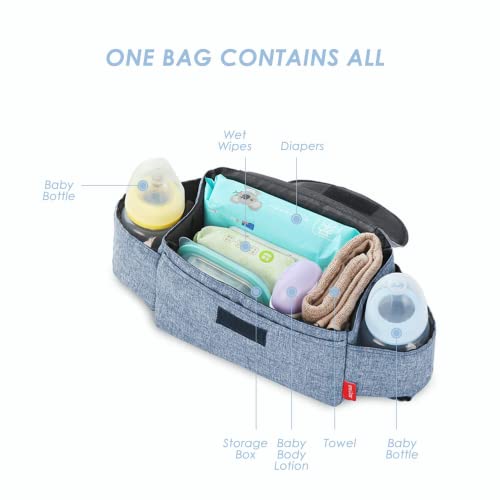 【Materiale sicuro】La del borsa per passeggino è realizzata in fibra di poliestere di alta qualità, poliestere 300 cationico e 210D, pratica, resistente all'usura, inodore, sicura al tatto, di alta qualità e durata. Questa borsa passeggino universale per passeggino è adatta per la maggior parte dei passeggini, non solo resistente, leggera e facile da pulire