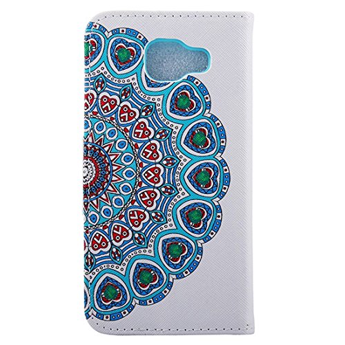 Borsa di pelle sintetica Custodia protettiva compatibile con Samsung Galaxy A3 (2016), chiusura magnetica laterale, palo, con modello di progettazione pavone (bianco, blu, verde, rosso)