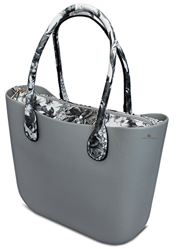 Ormi Borsa Personalizzabile In Silicone Gomma Completa Con Manici In Ecco Pelle Lunghi (Grigio)