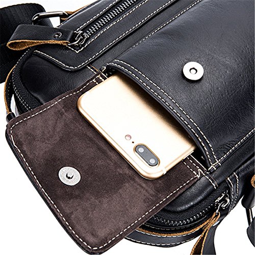 Borsa Petto Uomo Borse a spalla, Novatech Borsa A Tracolla Da Uomo, Borsa In Vera Pelle, Borsa Da Viaggio A Tracolla Leggera Retrò Crossbody Per Attività Sportive Casual Escursionismo Viaggio (Nero)