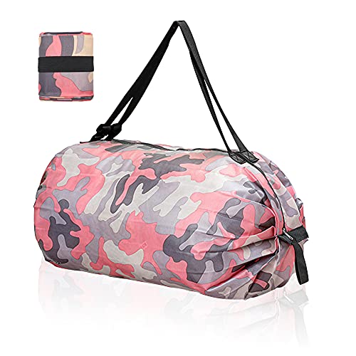 Borsa pieghevole riutilizzabile per la spesa, borsa portatile con una spalla, borsa da spiaggia impermeabile, grande capacità, per picnic, campeggio, viaggi (Rosa)
