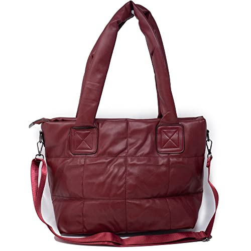 Borsa piumino rosso scuro donna trapuntata grande capiente imbottita da signora con tracolla zip a spalla shopping bag giornaliera tutti i giorni sera invernale autunno inverno 2023 2024 Bordeaux