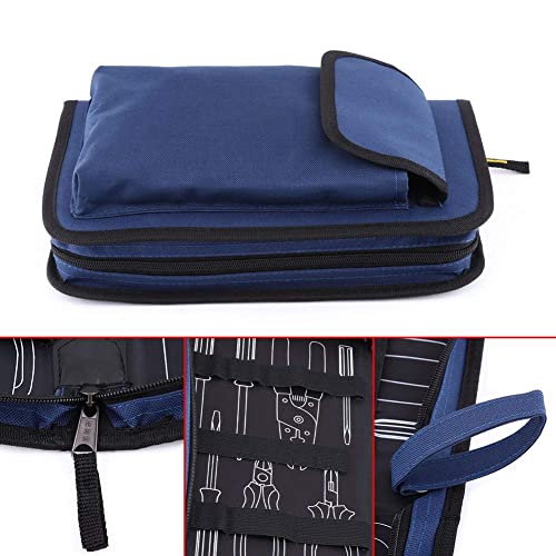 CARATTERISTICHE POTENTI -- È progettata con una grande tasca con cerniera per contenere piccoli oggetti e la borsa ha una cinghia di fissaggio elastica e alta per tenere gli strumenti saldamente in posizione.